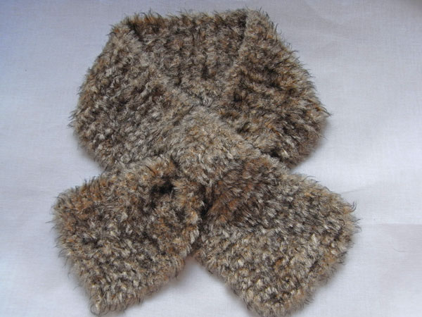 今回は、クタクタフワフワキッズマフラーの残り糸を使って、シュシュ。