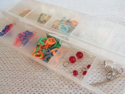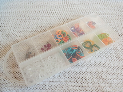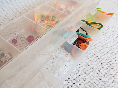 目数リング、段数リング、ニットリングなどを大きさ別に収納。