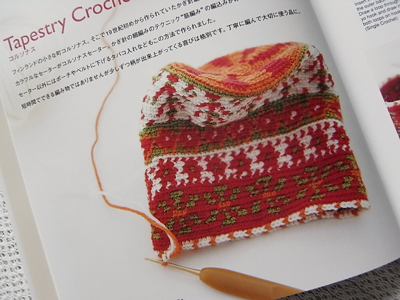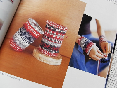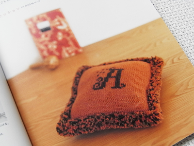 これをあしらった、手袋、バッグ、クッションの編み図があります。