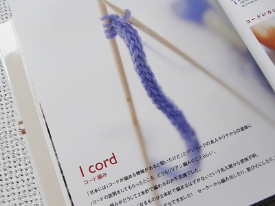 頭に小さなポツポツがついたリリアン編みの道具を使わず、棒針で。