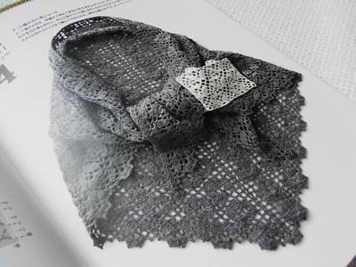 まずは、ネット編みの三角ショール。