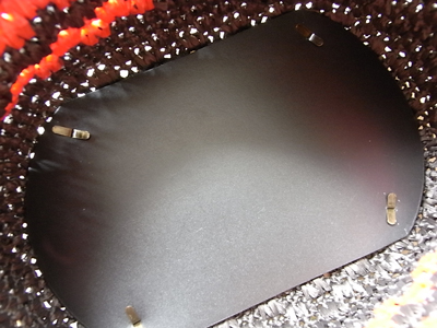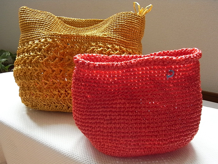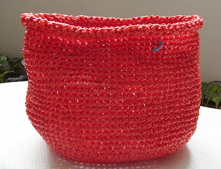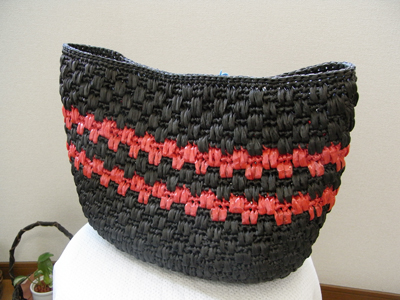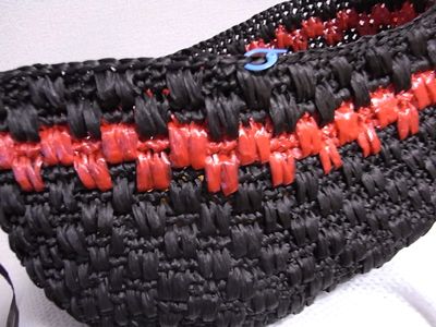 焦げ茶はハマナカのアンダリヤ、赤い部分はジャンボリーストロー。