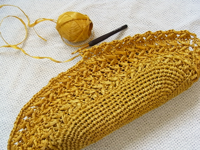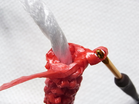 編み図の持ち手は、糸を細編みにグルグル編んで