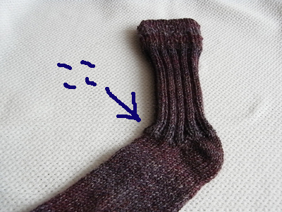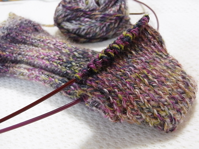 ソール部はメリヤス編みにしてるけど、
